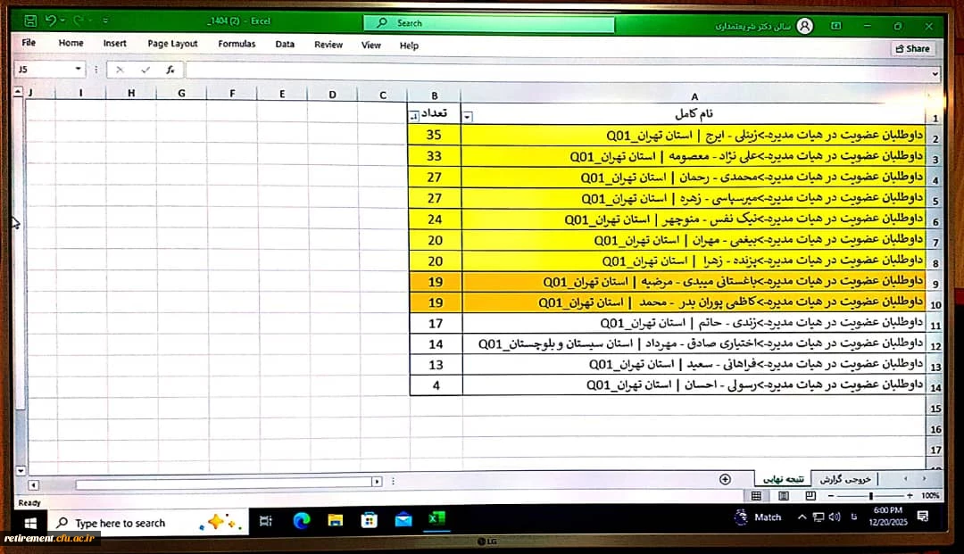 موضوع: گزارش انتخابات اعضاء هیئت مدیره کانون بازنشستگان کشوری دانشگاه فرهنگیان